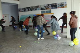公司女職工踴躍報名,積極參與?;顒蝇F(xiàn)場內容豐富,形式多樣,有吹氣球、踩氣球、袋鼠跳、顛兵乓球、夾彈珠、滾輪胎、搶座位、運球50米賽共8個游戲。女員工們不甘示弱,各顯身手,各個表現(xiàn)神勇,現(xiàn)場歡笑聲、加油聲此起彼伏。