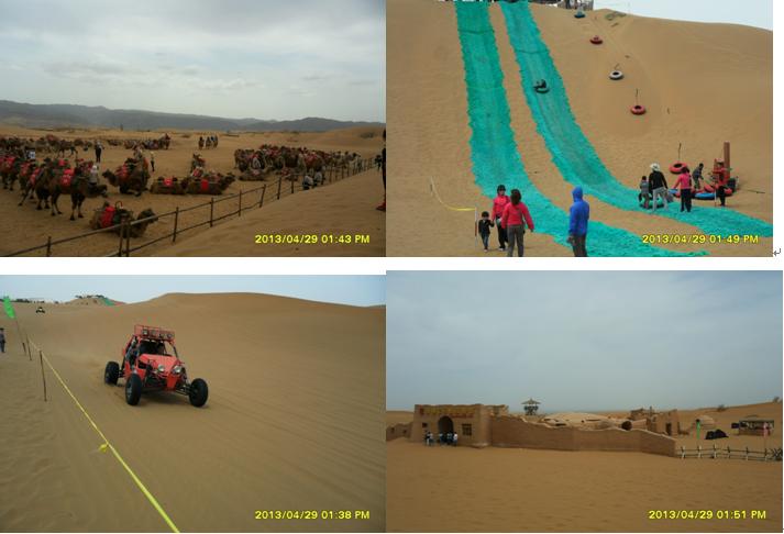 4月29日,吃罷早餐,簡(jiǎn)單準(zhǔn)備,我們登上了去中衛(wèi)的中巴,開始了我們的旅程。約一小時(shí)的路程,我們到了中衛(wèi),一下中巴車,馬上就感受到了旅游旺季旅游景點(diǎn)的“熱”。在中衛(wèi)汽車站,沙坡頭旅游公司工作人員得知我們?nèi)ド称骂^玩,便熱情向我們介紹旅游套餐。各種游玩項(xiàng)目價(jià)格令人嗔舌,沙坡頭旅游景區(qū)門票在淡季2元/人,在“五一”小長假這樣的旺季,立刻飆升到90元/人,寧夏籍的游客憑身份證每人可以享受65元優(yōu)惠價(jià),大部分游玩項(xiàng)目價(jià)格都在80元/人。